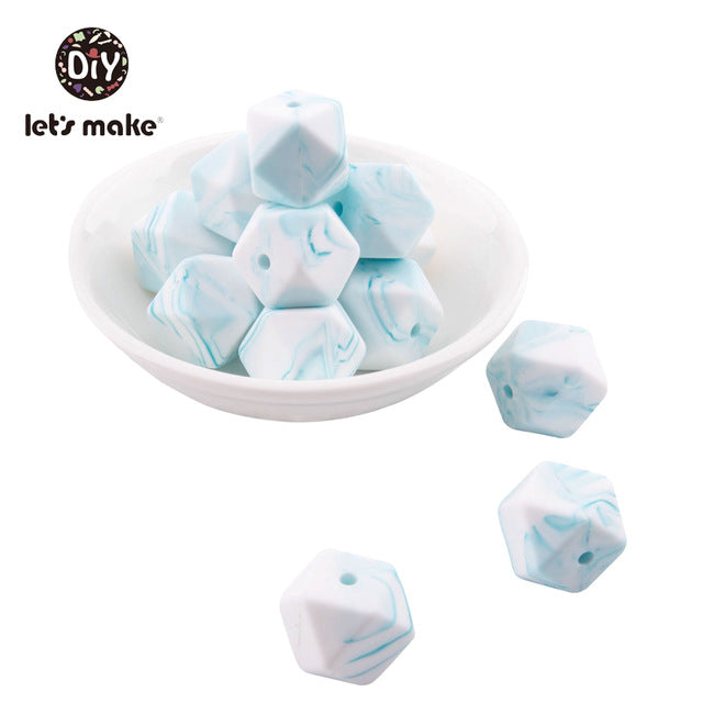 Silicone Beads BPA Free Hexagon Beads 14mm Food Grade Silicone Teether DIY Teething Beads Necklac 10pc Baby Teether Let's Make